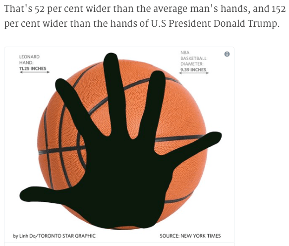 With a wingspan a huge 2.21 meters and hands that are 9.75 inches in length and 11.25 inches wide, there isn't a lot getting past leonard on the court!